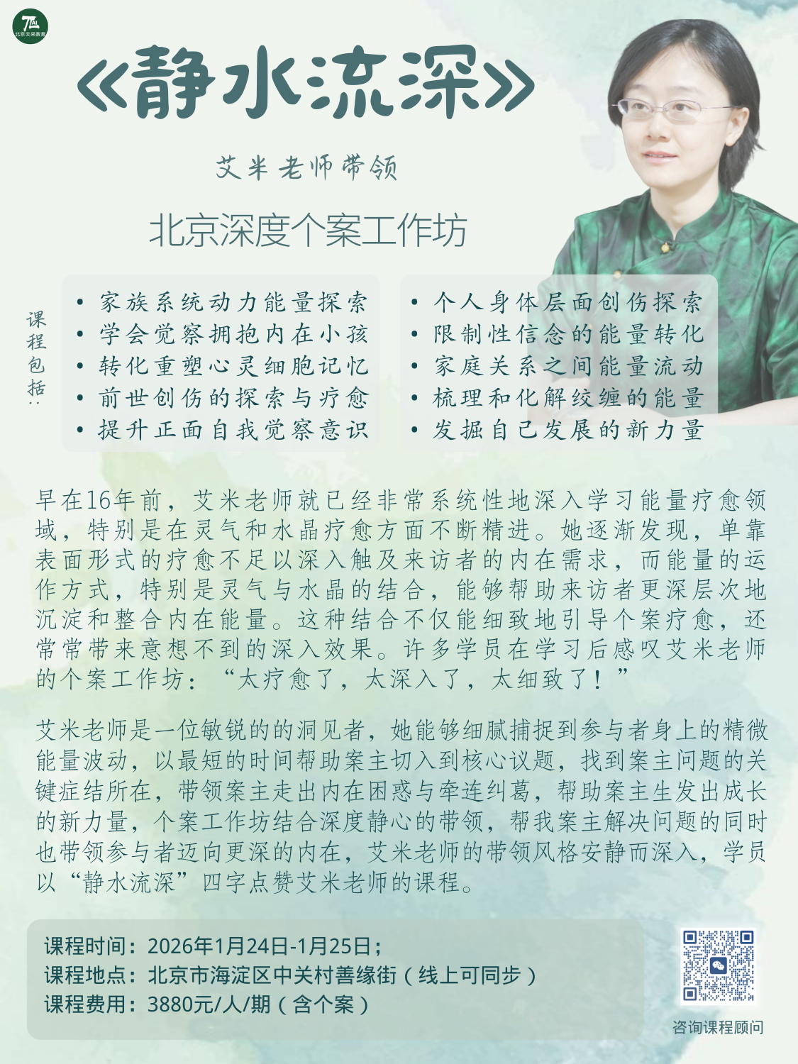 这种独特的家族系统排列运作方式是和能量疗愈进行相结合的,比传统一般的系统排列,更能有效帮助案主进行内在能量的转化与整合。在这个团体疗愈的场域中,您可以提出本人生活/生命中所关切的议题,老师会就相关议题展开“个案”带领,同时会对议题进行延展解析。此次课程,我们同样也会同步开启线上的通道来连接地面的场域,线上的同学也同样可以申请个案议题。我们会把握好场域的音像品质,让您在线上也会有非常好的融入感和体验感。您可以选择地面的代表来呈现您的个案,同时线上的同学也可以非常融入到参与到地面人物的互动中。这也是我们的个案工作坊常常会有很大比例的线上参与成员的原因之一。我们在声音设备上有独特的人工智能技术支持,让线上参与者能够全然融入,不会因为其他地面人员的走动或挪动椅子而产生干扰。视频设备我们也选择了4K的画面呈现品质,尽量让大家能够看得舒适清晰。